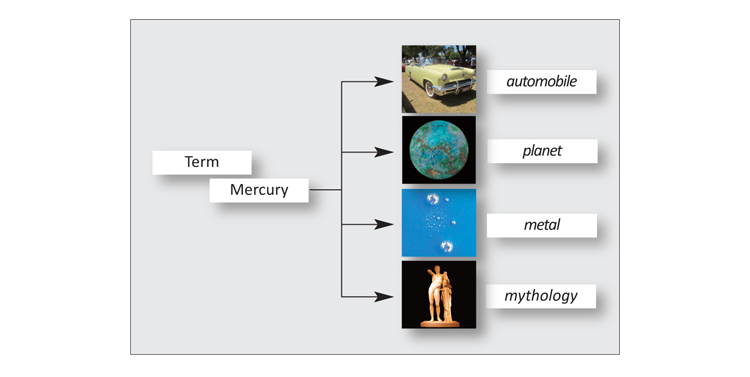 The same word can have more than one meaning, the same word is used to represent different concepts.